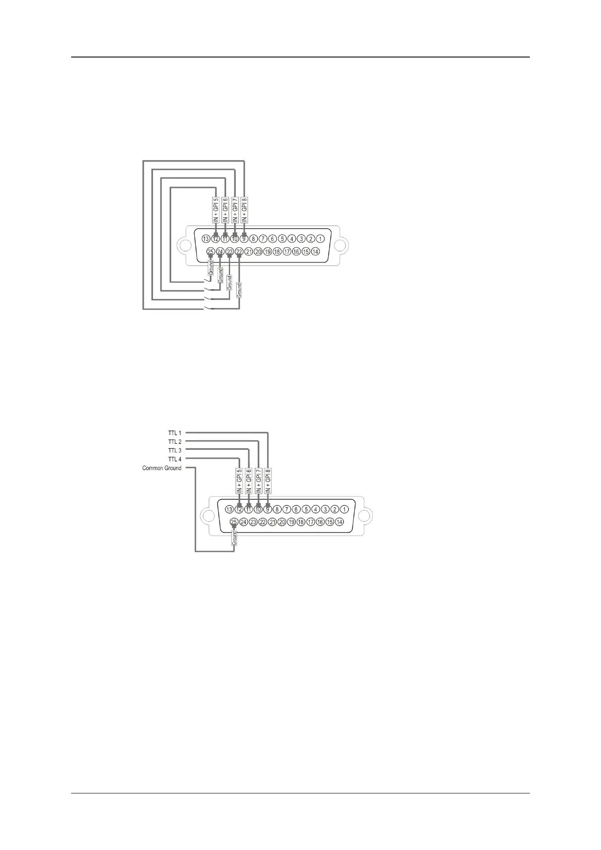 device triggering the GPI. The ground must be common between the DB-25 connector of