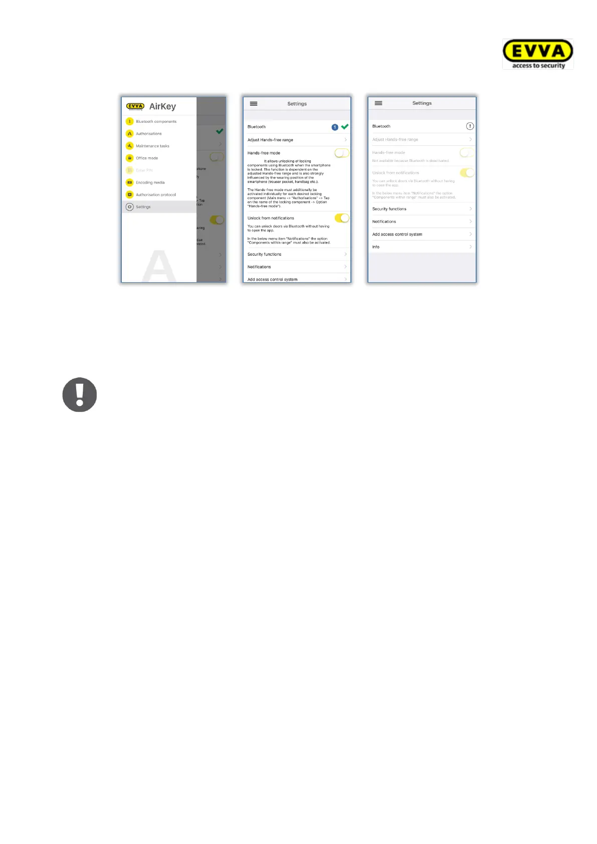 The "Bluetooth" entry in the AirKey settings merely illustrates whether Bluetooth func-