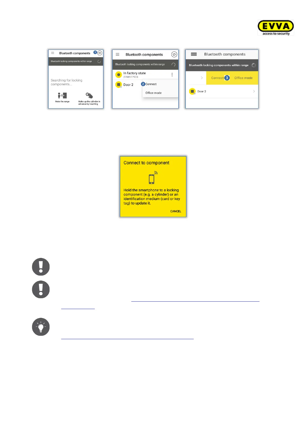 Figure 242: AirKey app – connecting to component (Android NFC / Android Bluetooth / iPhone)
