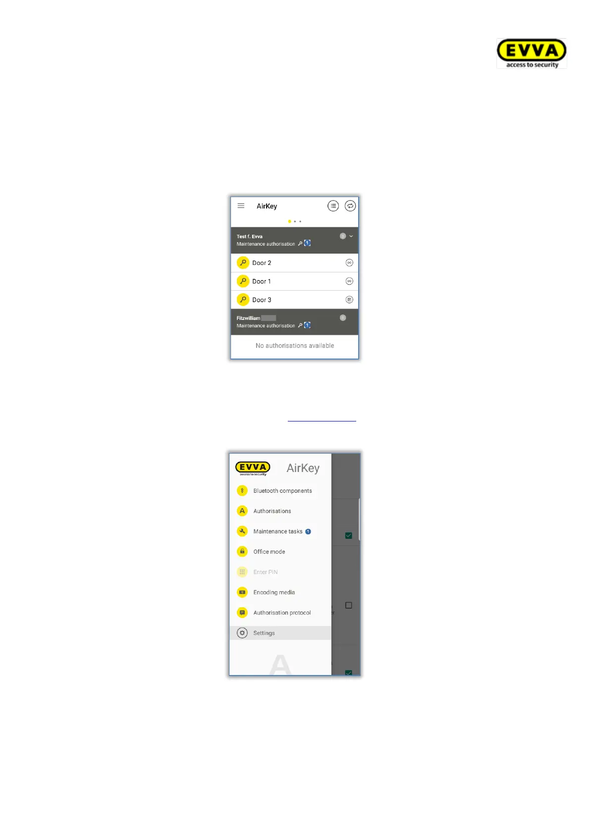 The Maintenance tasks menu item is additionally enabled in the AirKey app.
