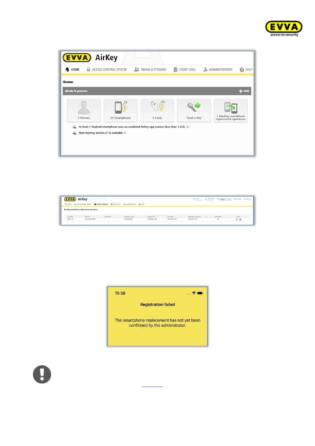 Figure 301: Home screen – pending smartphone replacement operations