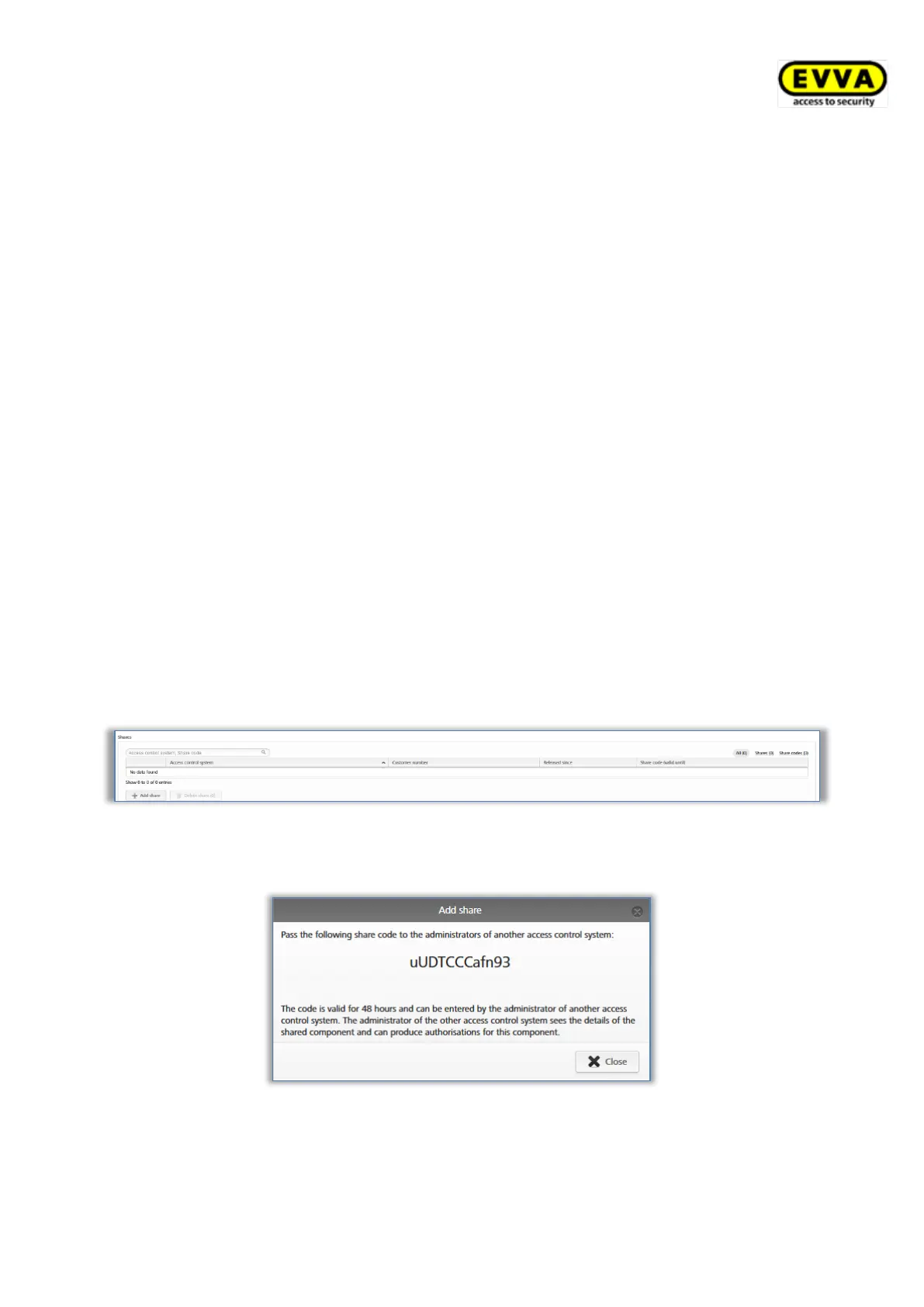 > Notify the administrator of the other access control system of this sharing code.