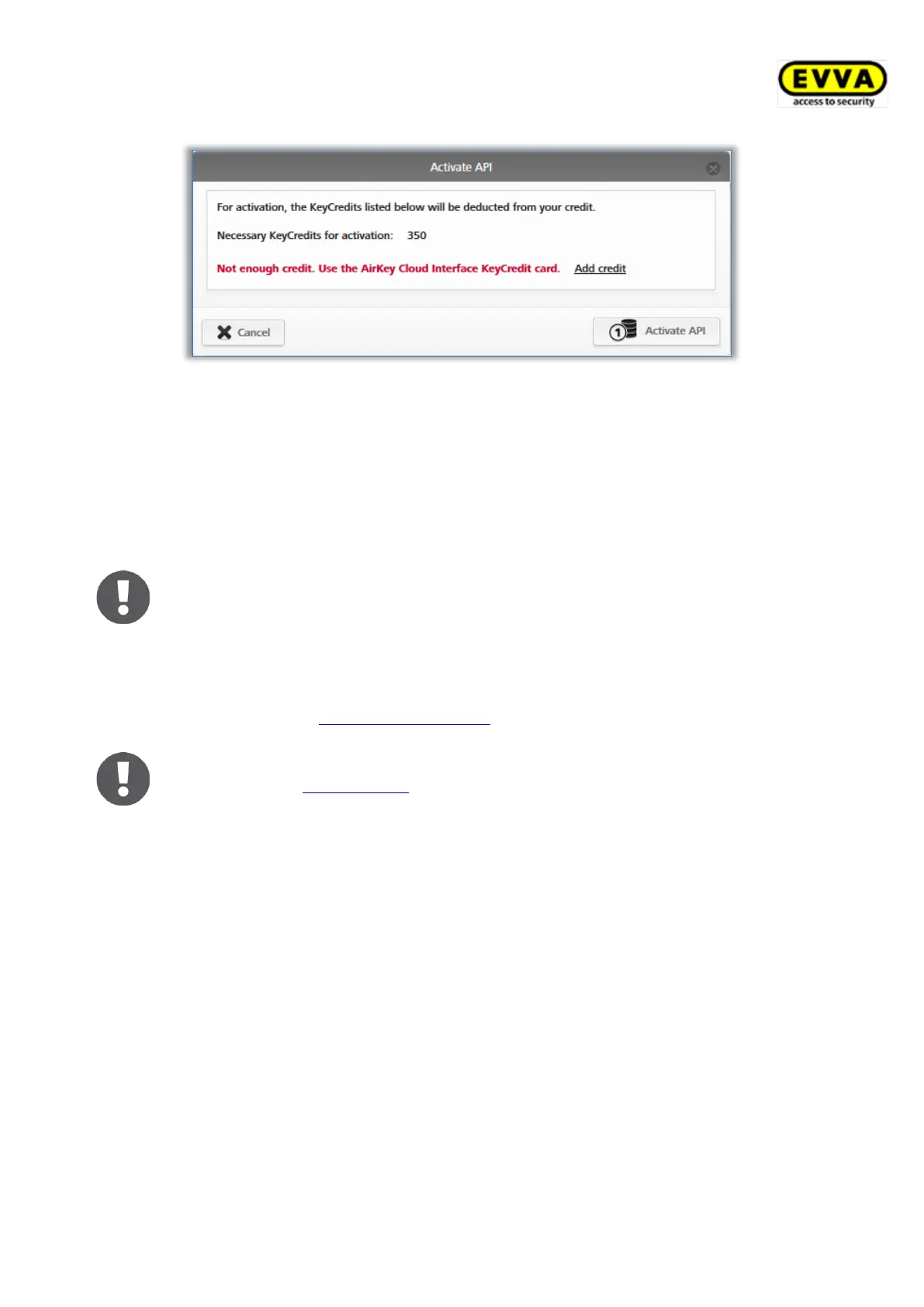 notifications from EVVA (e.g. about low KeyCredits credit) by e-mail