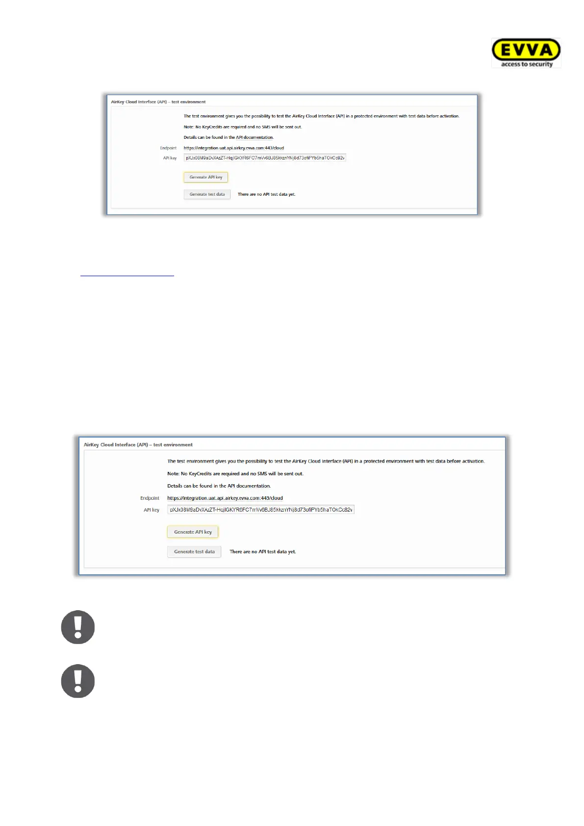 An API key is also required for communication with the AirKey Cloud Interface (API) test