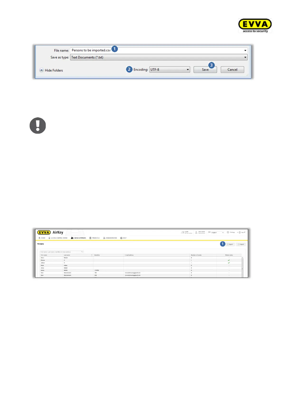 Importing the CSV file to the AirKey Online Administration in UTF-8 format