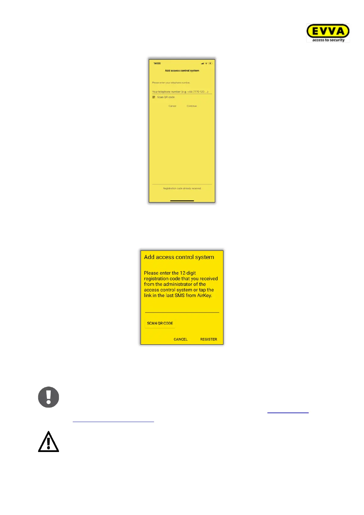 > Enter the registration code you received from the access control system