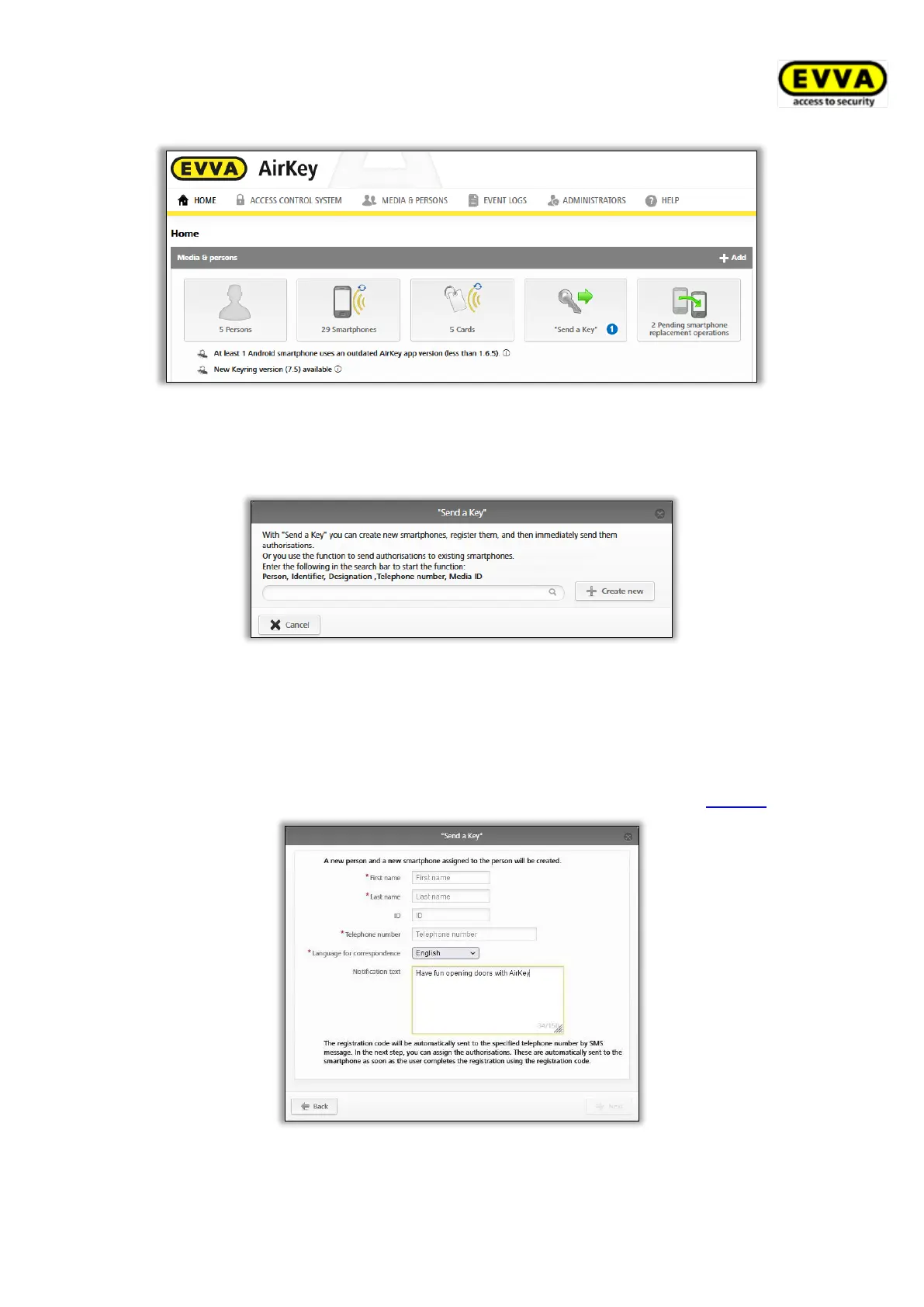immediately sent to the corresponding user containing a link to the AirKey app to