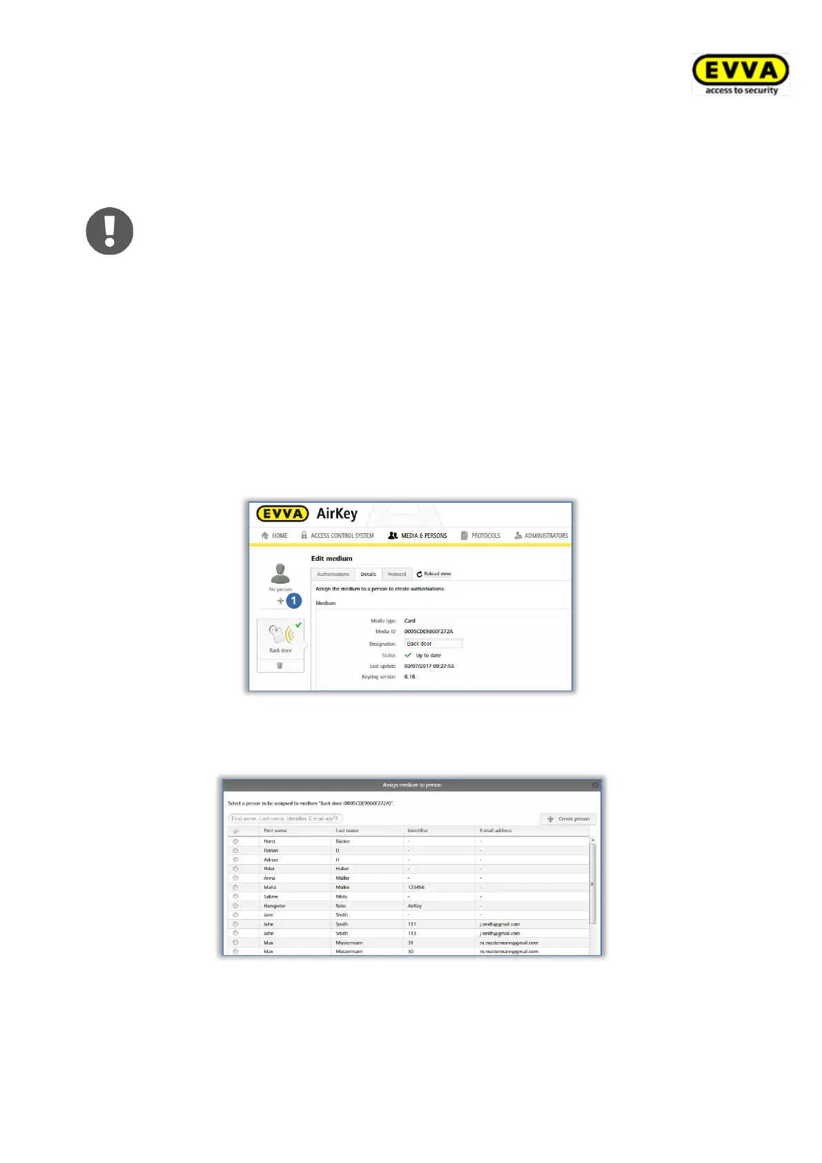 As part of the continue step, you must assign the medium to a person within the AirKey