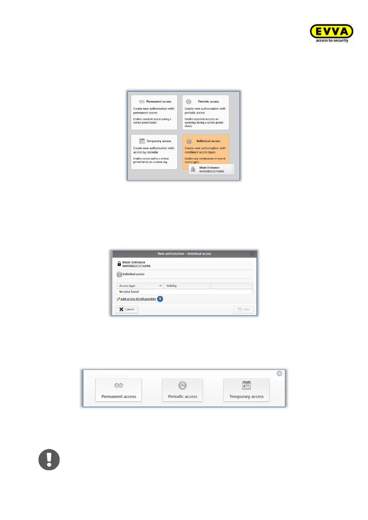 > The "New authorisation – Individual access" dialogue window shows any individual