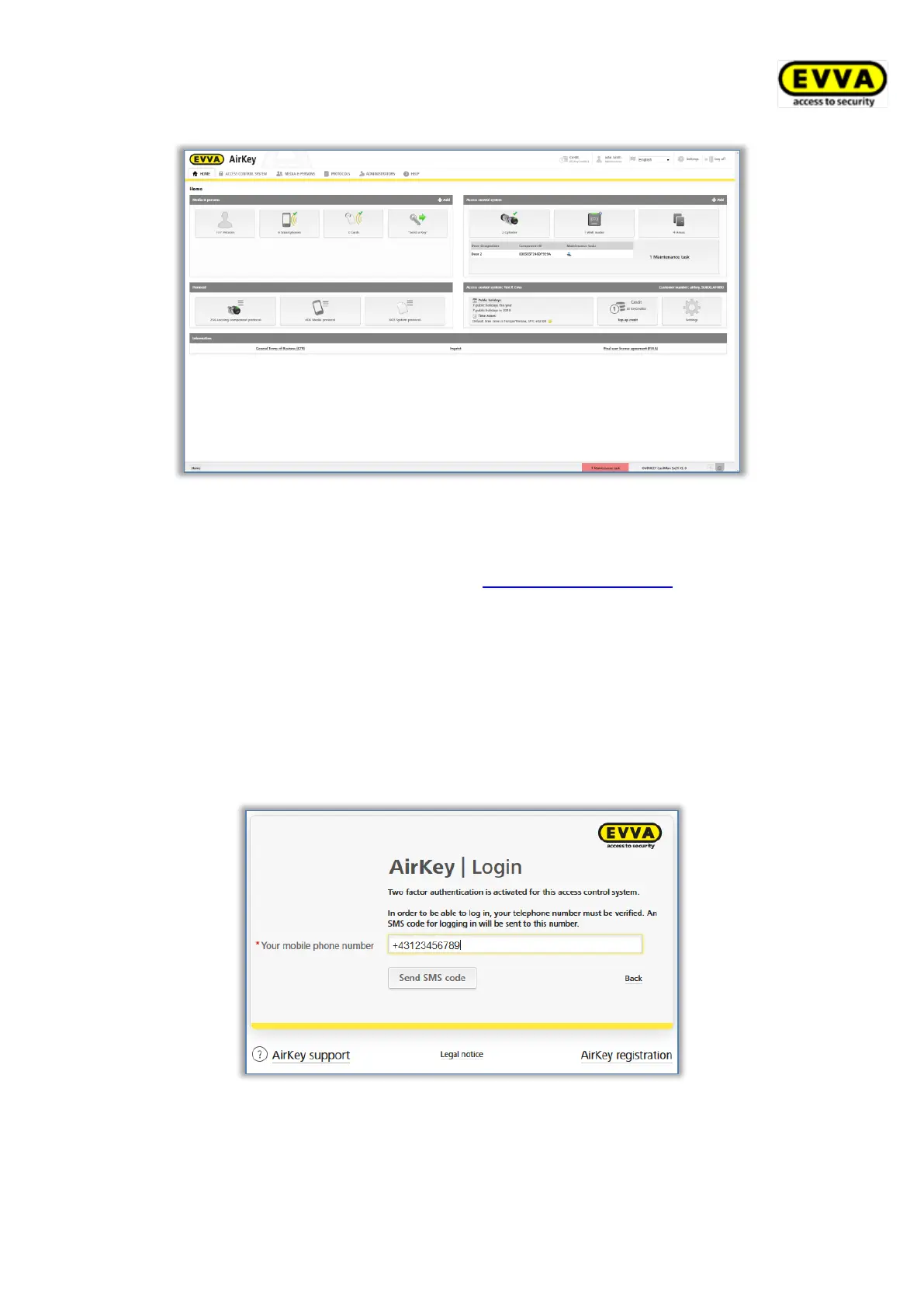 > Enter this SMS code in the dialogue within the AirKey Online Administration and