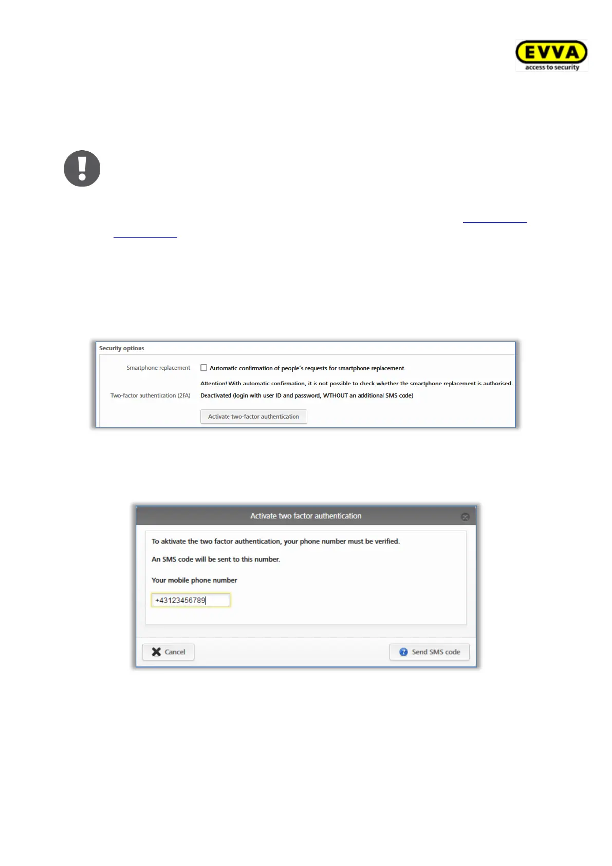 additional SMS code is requested as a second factor. If two-factor authentication is activated