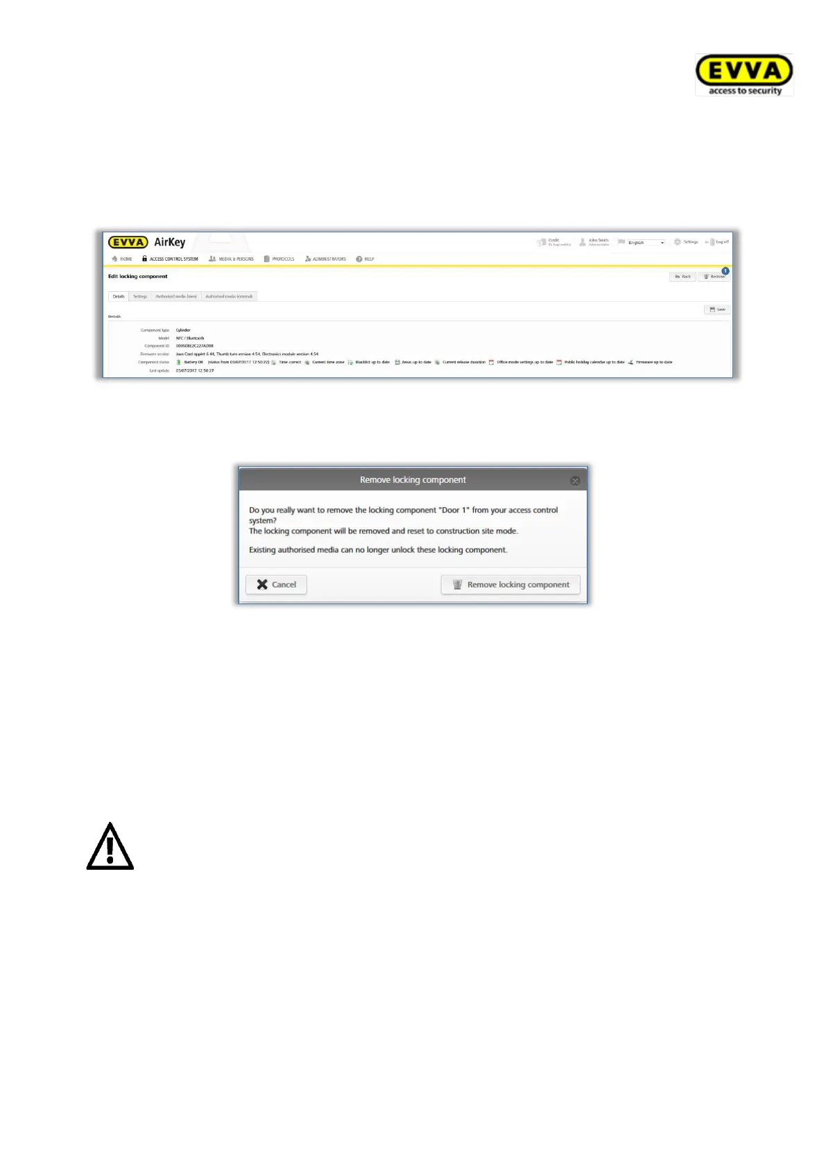 component must be removed from the access control system.