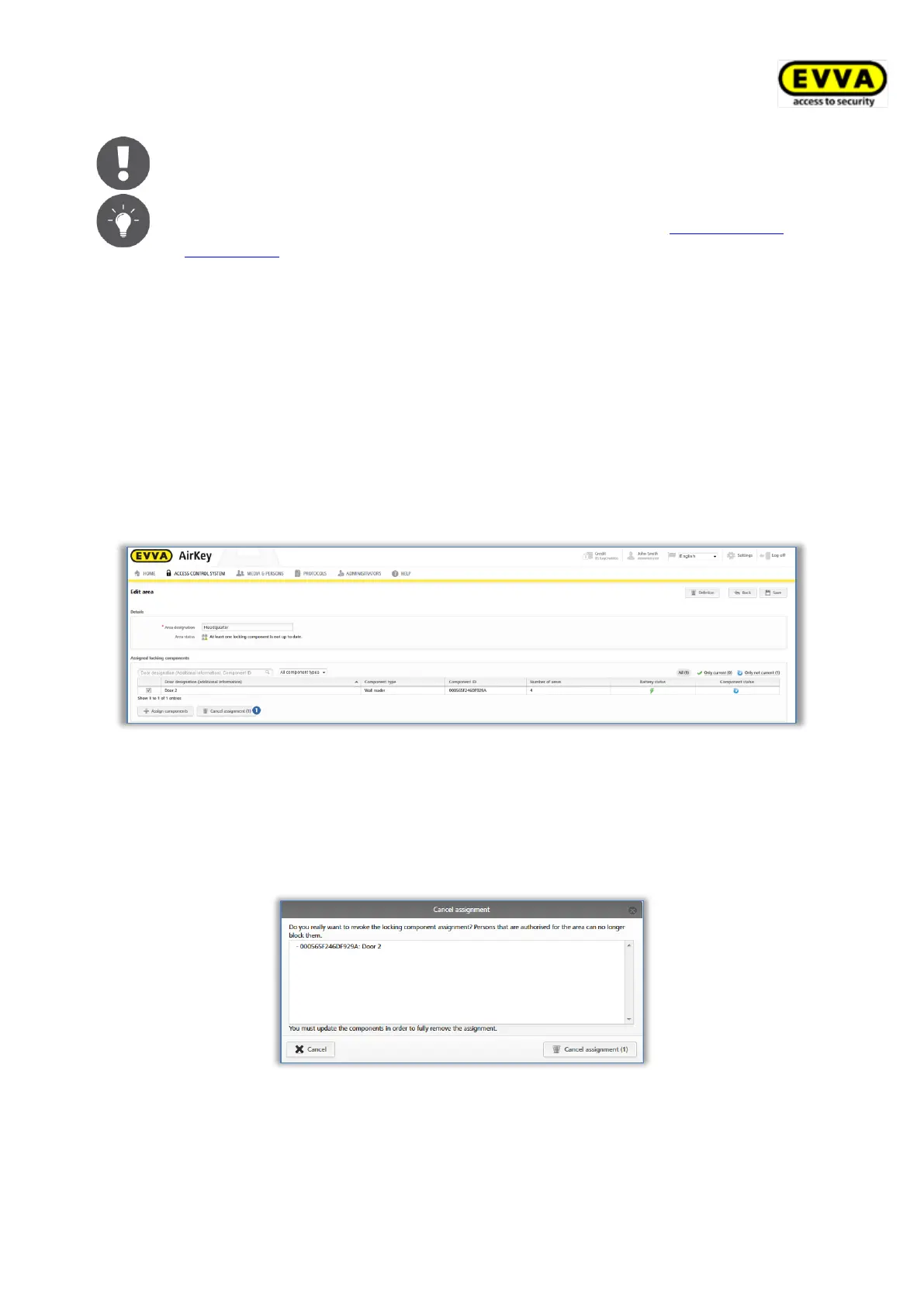 Proceed as follows to cancel assignments of one or more locking components to an area: