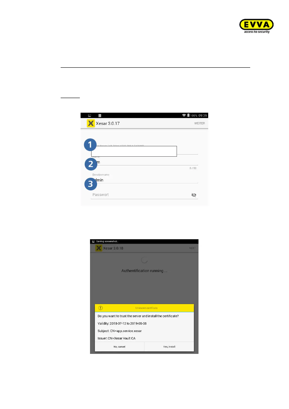 3. Step: Open the Xesar app on your Xesar tablet, click "Synchronise" and enter the