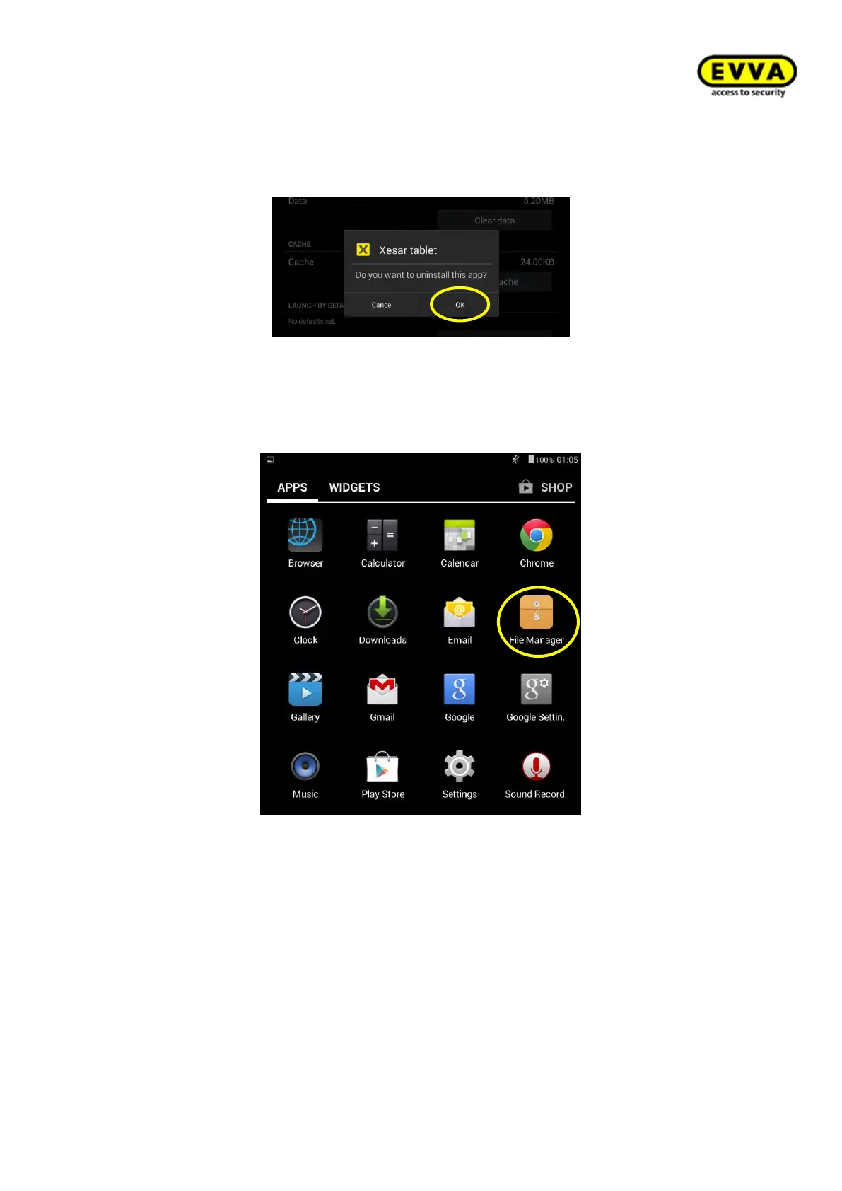 Figure 107 Uninstalling the Xesar tablet app OK