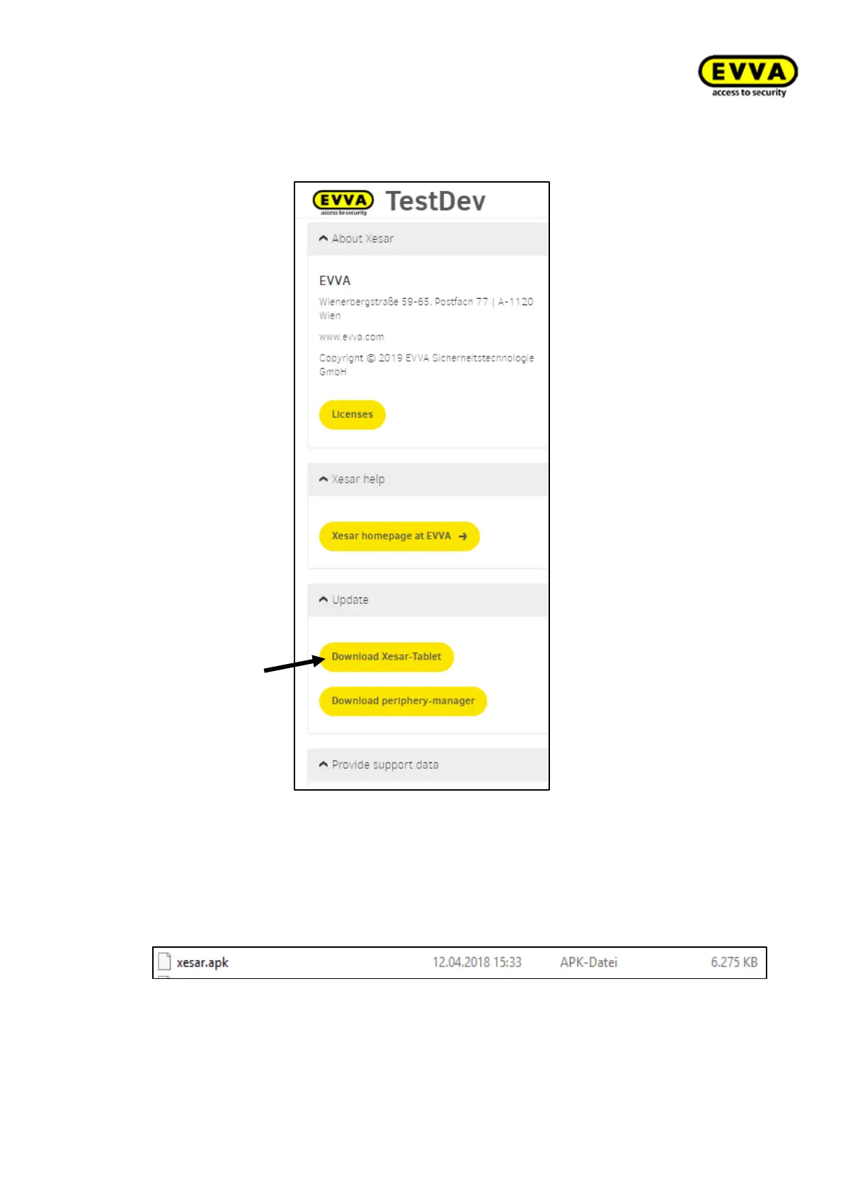 8. Step: The current Xesar app is found under "Update". Click "Download Xesar tab-