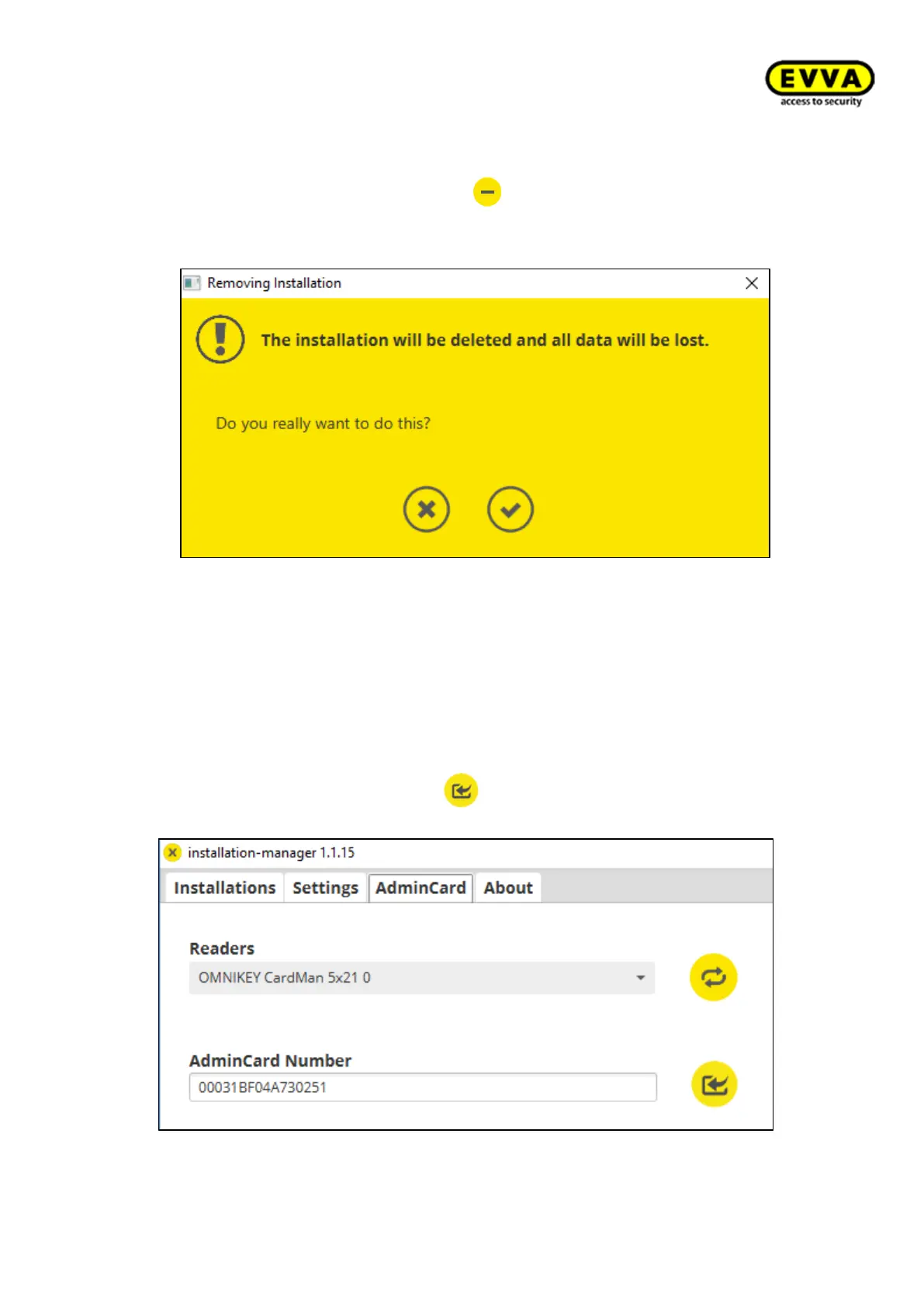 • Load the AdminCard by clicking on .