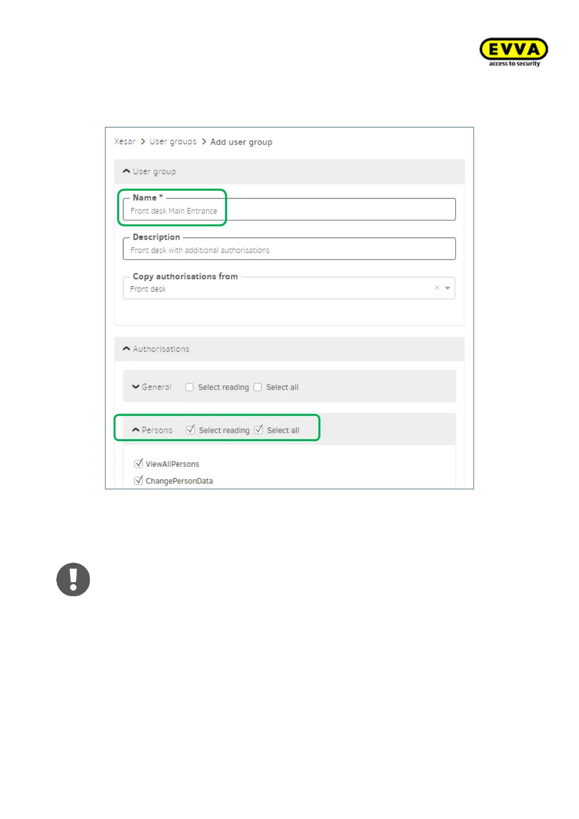 basic Front desk user group, and additional reading and editing rights for Persons