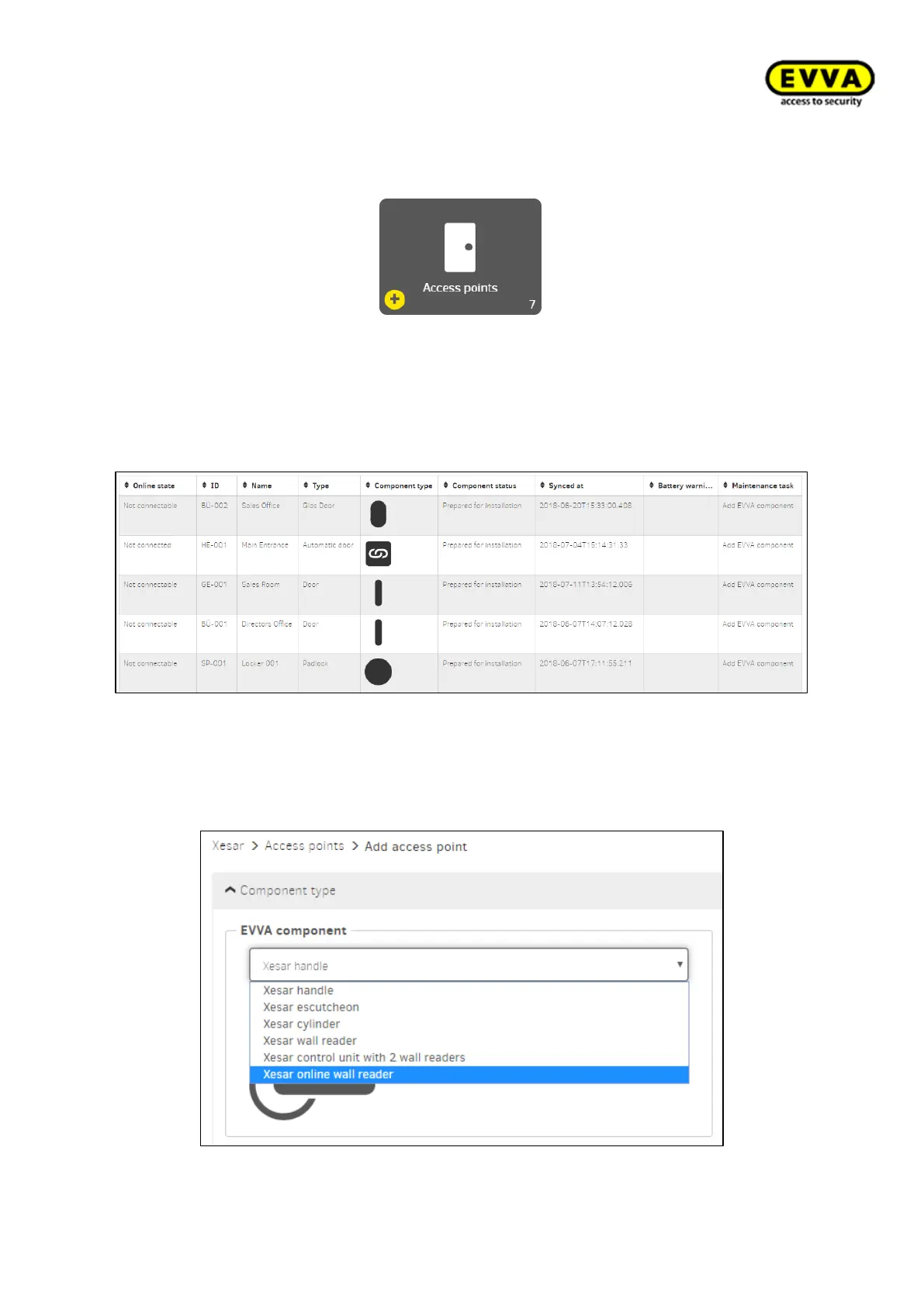 All access points with EVVA access components of a Xesar system are created and defined