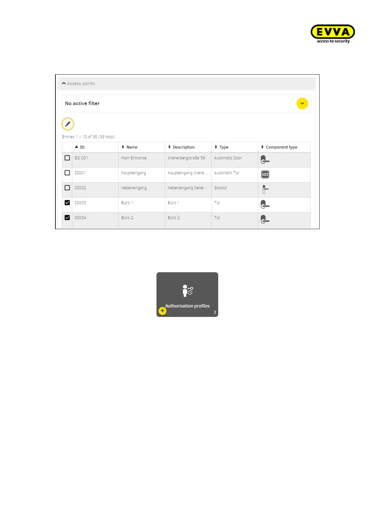 If no access points or zones are assigned to an authorisation profile, then the entry "No"