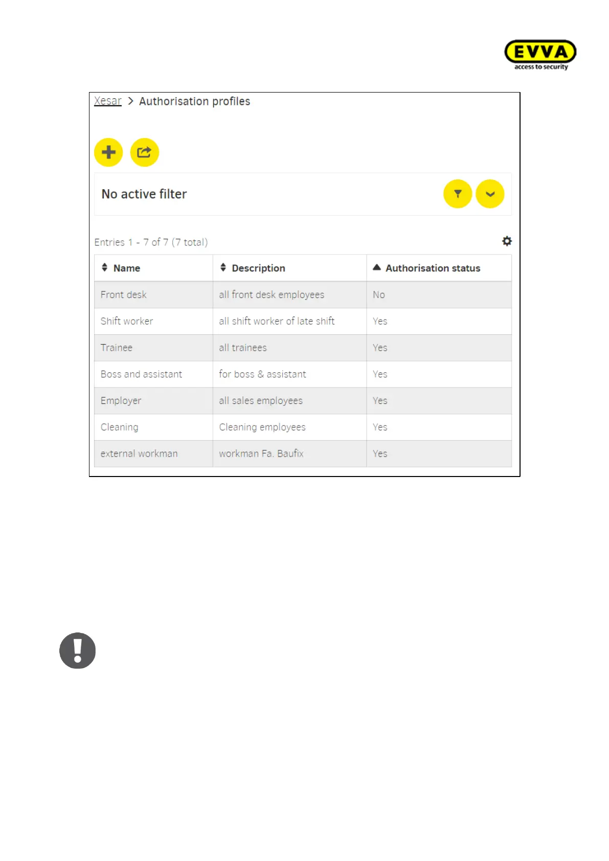 Name (mandatory): Name of the authorisation profile, e.g. shift worker