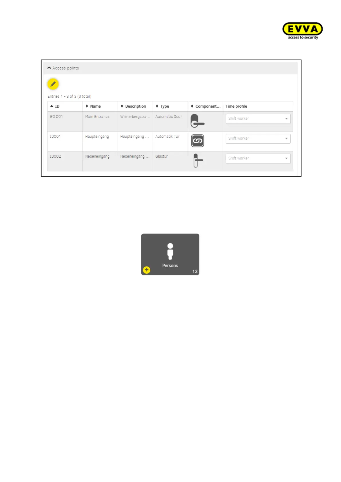 The "Persons" area defines all relevant information on the persons authorised in the sys-