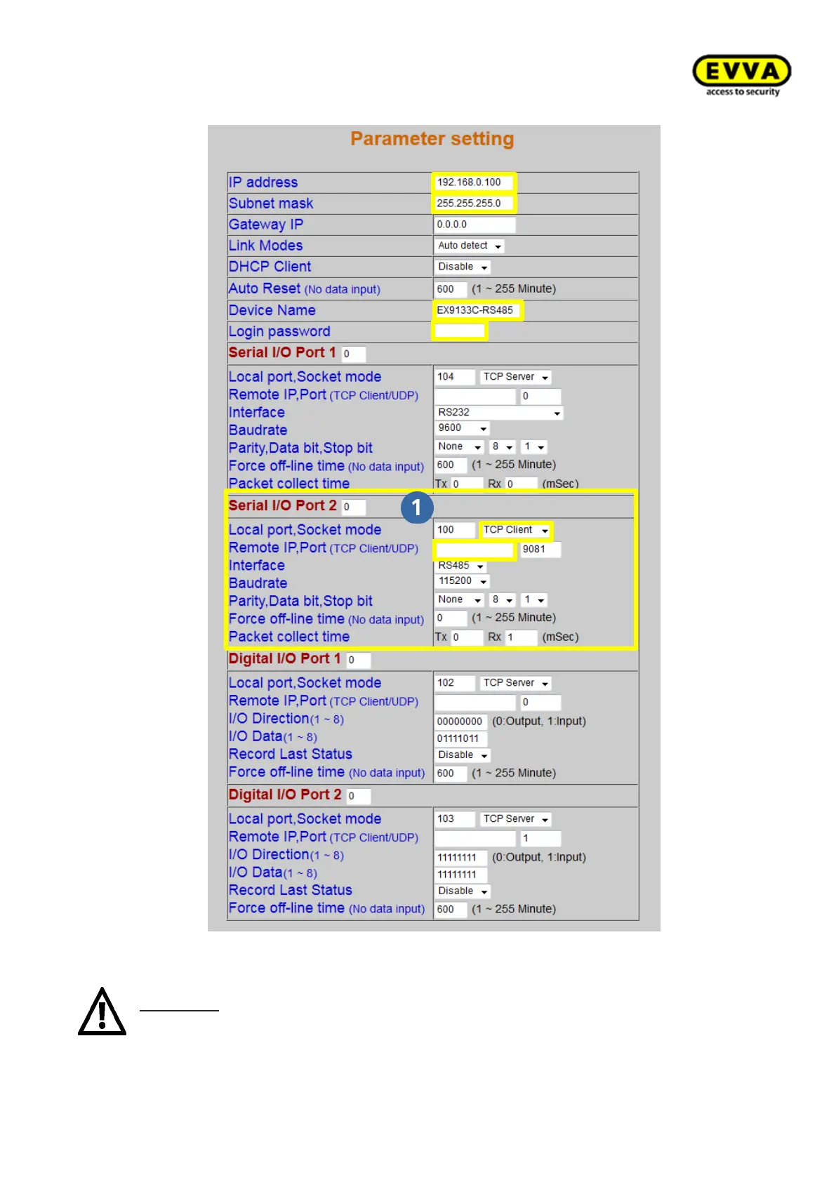 Attention: The number "100" may only be used once for "Local port, Socket mode"
