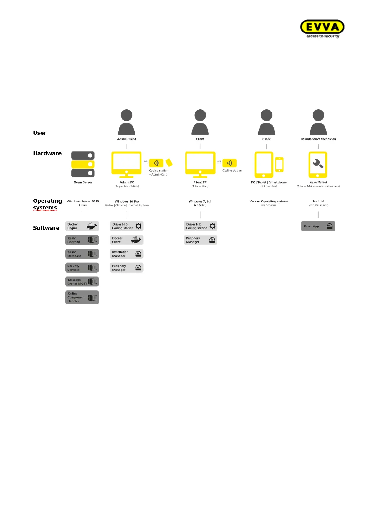 The multi-user system consists of a server, an Admin PC with coding station & Admin Card and
