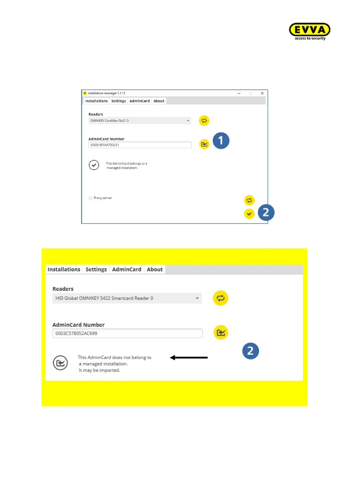 Figure 53 – Installation manager tab: Admin Card – loading the card