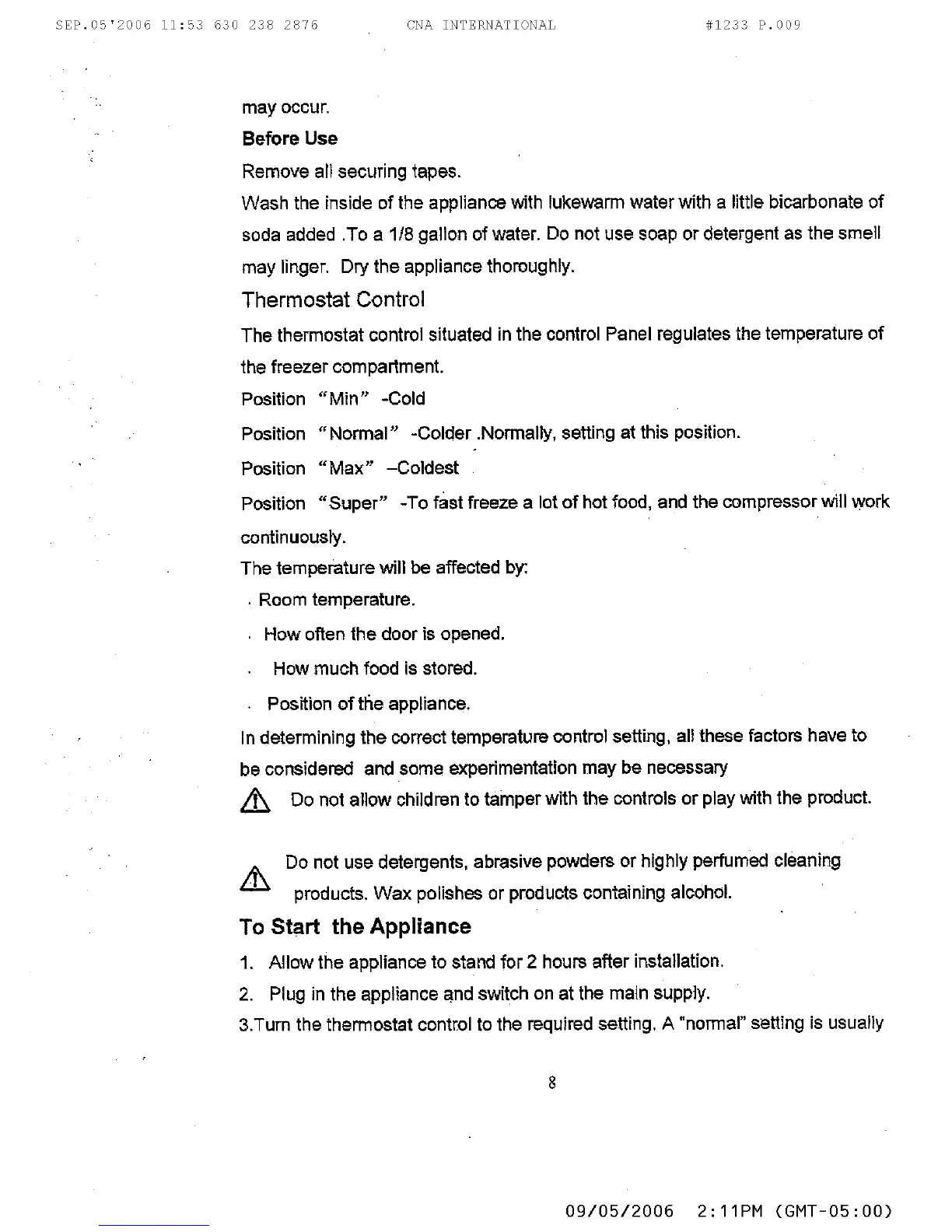 Ewave EWUF5W - Before Use; To Start the Appliance
