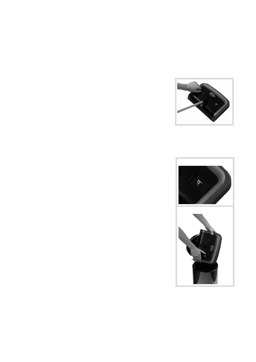 Pour le vider, tenir le balai au-dessus d’une poubelle et soulever le