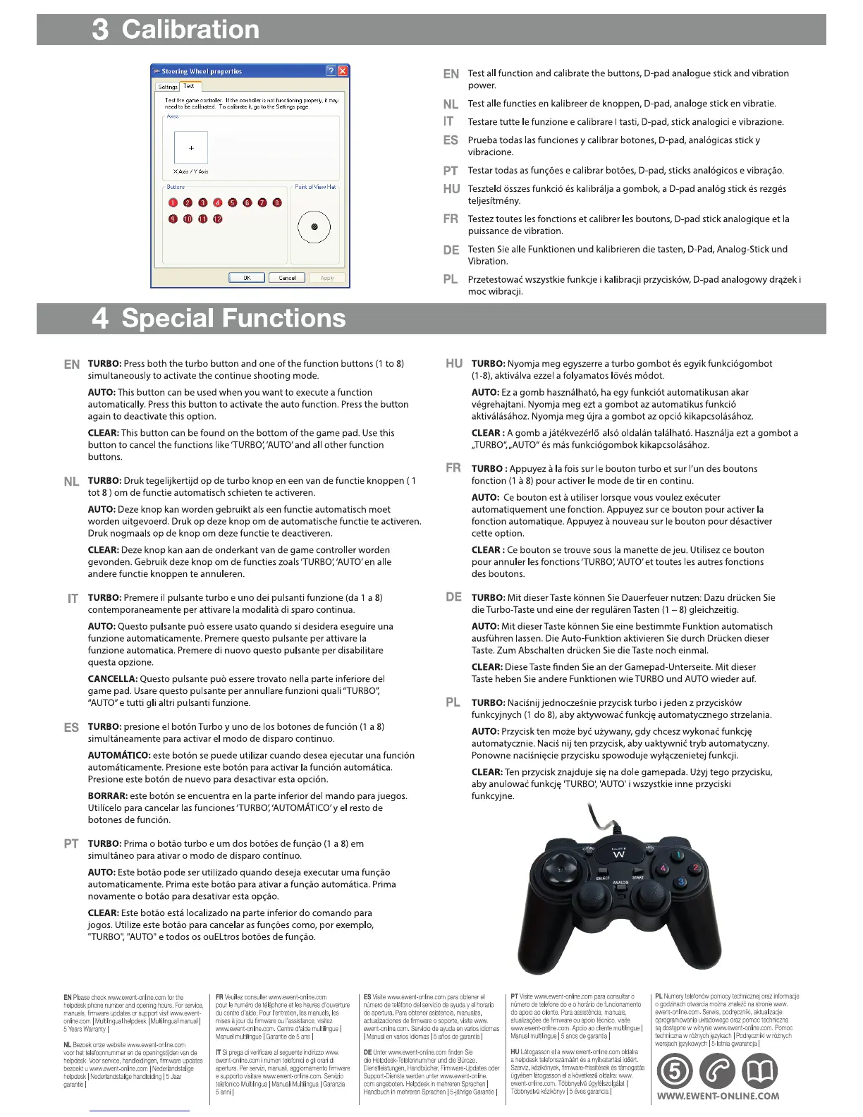 Ewent EW3170 - Calibration; Test and Calibrate Controller Functions; Special Functions; TURBO Function
