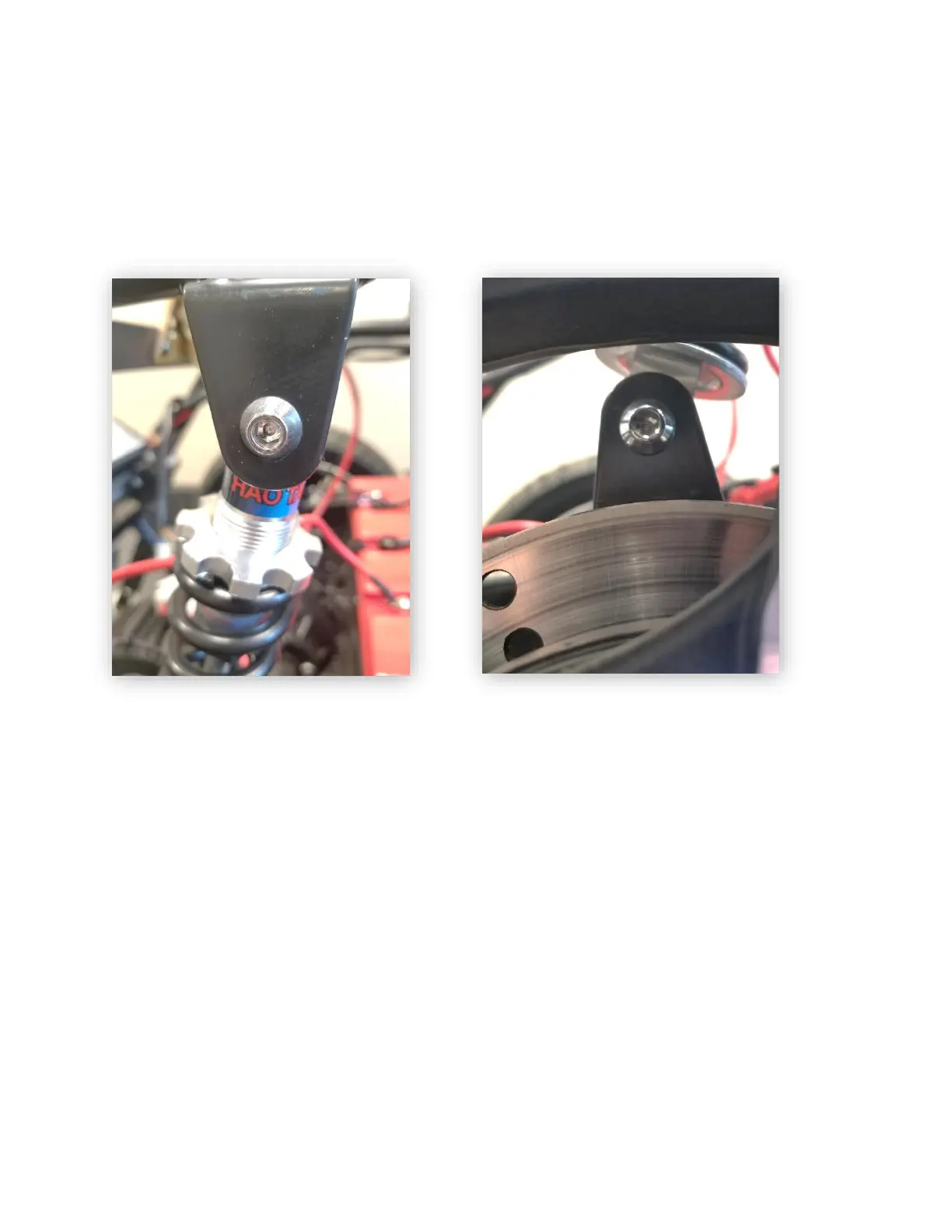 separately to avoid frame to frame contact. The top, and bottom bolt for the rear shocks are 5mm hex