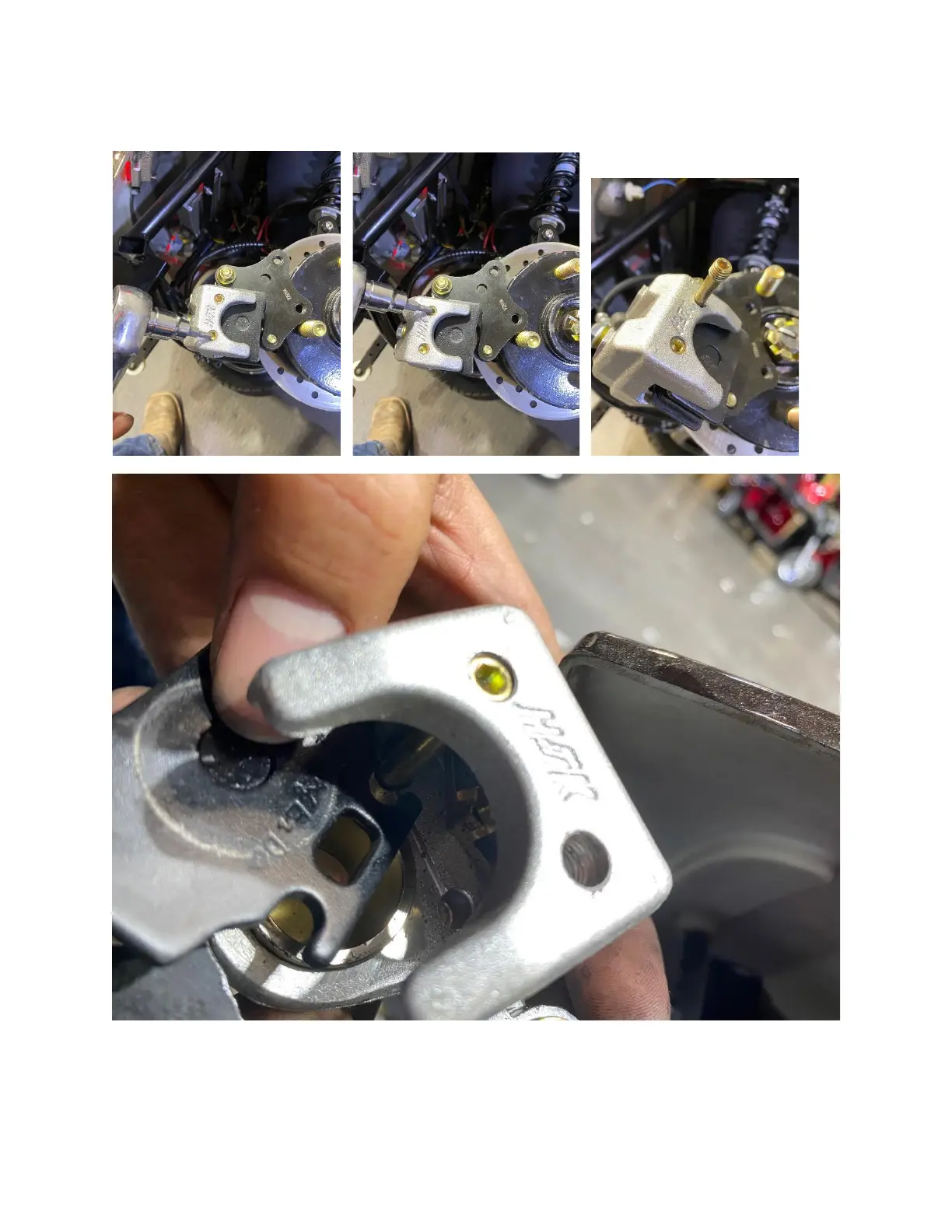 In this photo you can see the brake pads having cut out/ groove for the brake pads to sit in the caliper