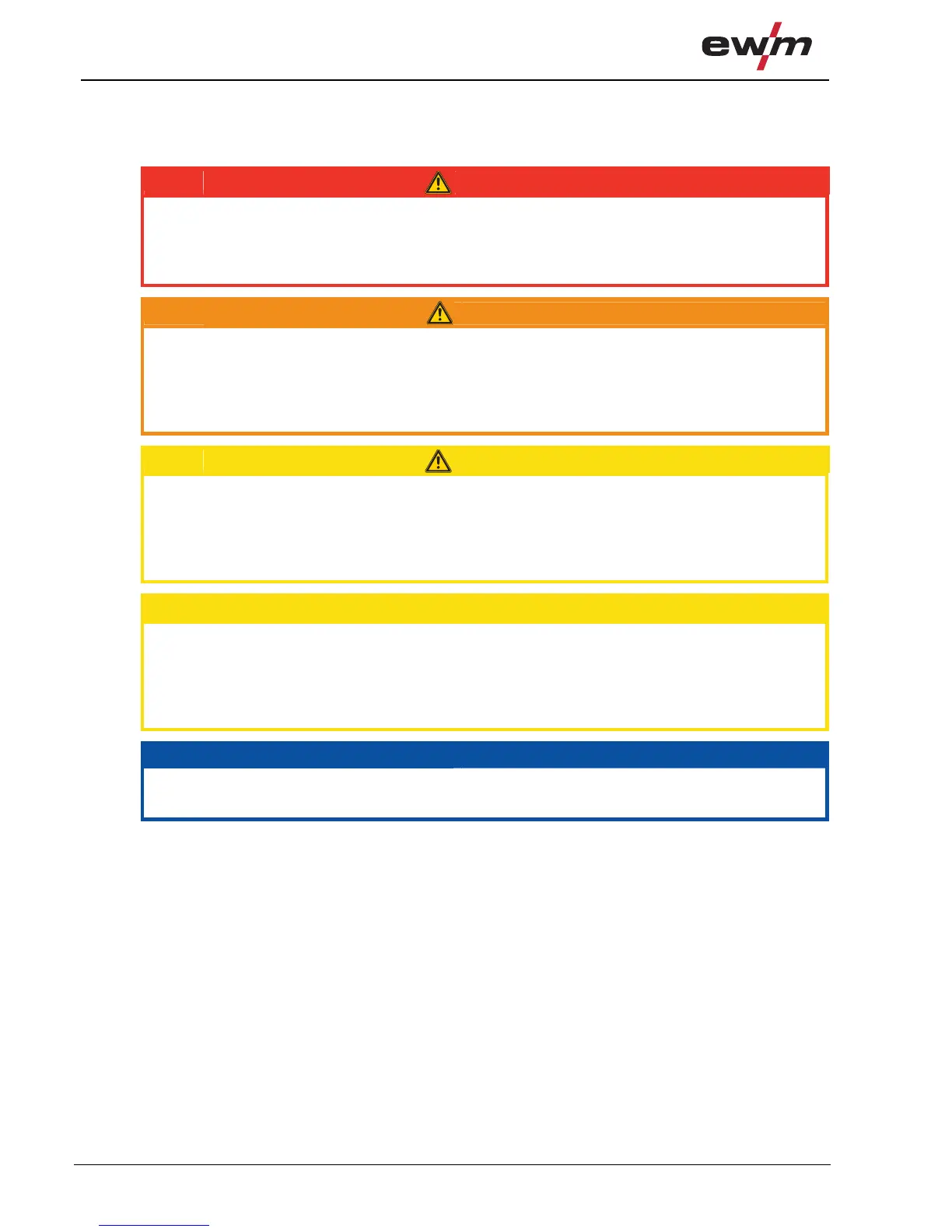 • Safety notes include the "WARNING" keyword in the heading with a general warning