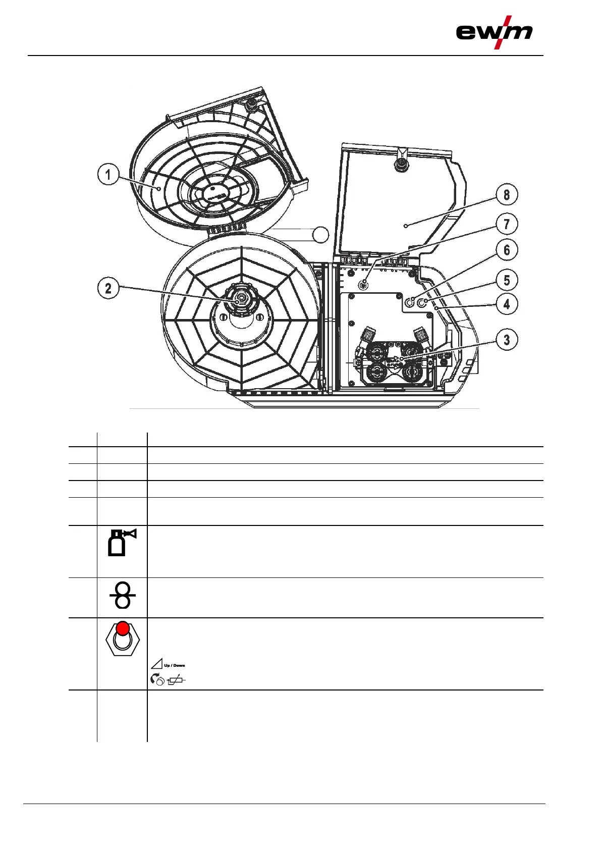 For inching the wire electrode after changing wire spools. (The welding wire is inched