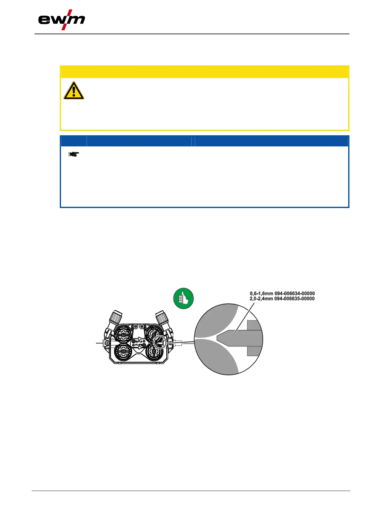 • Use a steel liner when welding hard, unalloyed wire electrodes (steel).