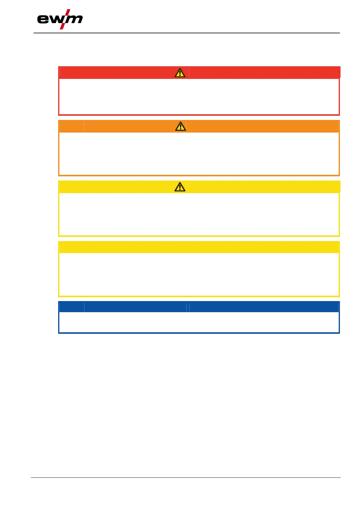• Safety notes include the "WARNING" keyword in the heading with a general warning