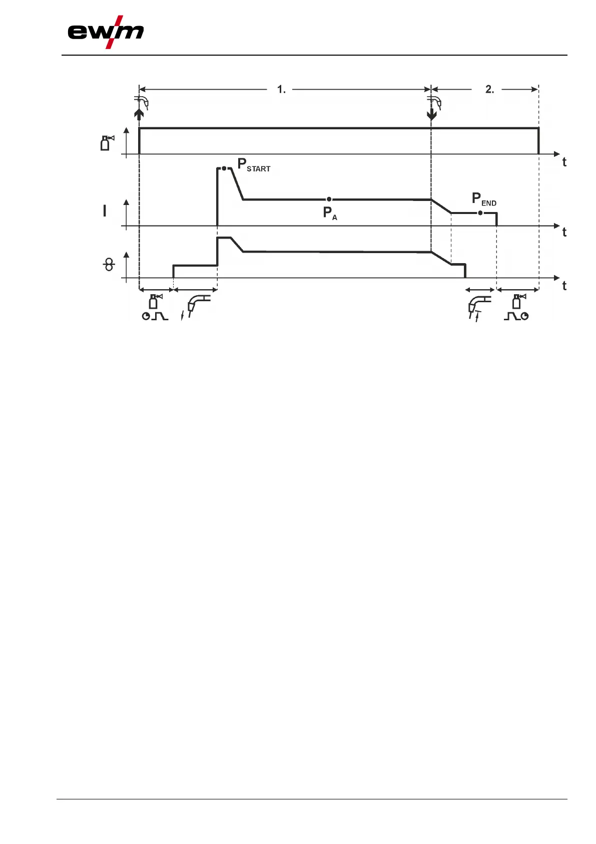 • Arc ignites after the wire electrode makes contact with the workpiece, welding current is flowing (start