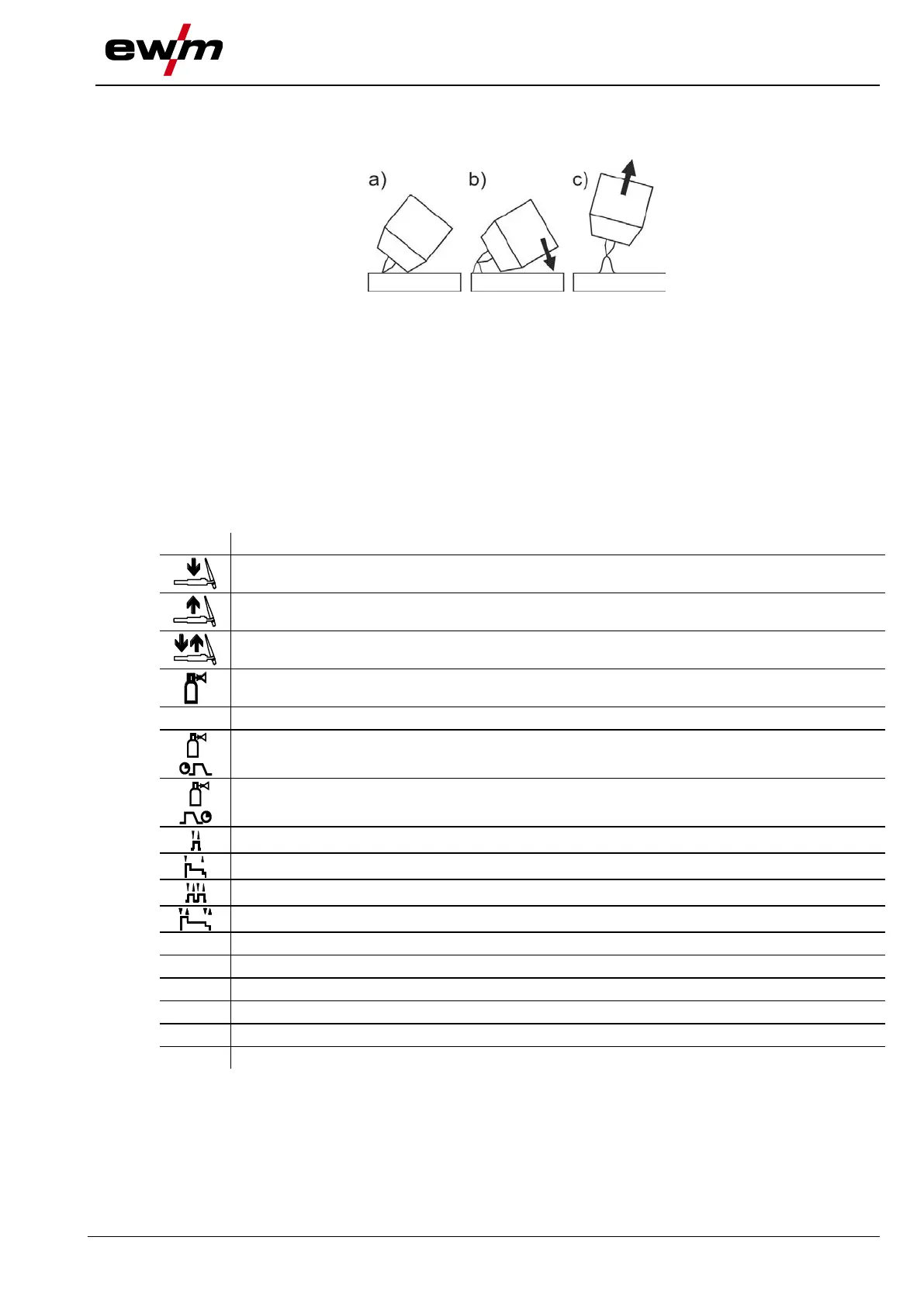 a) Carefully place the torch gas nozzle and tungsten electrode tip against the workpiece (lift arc current