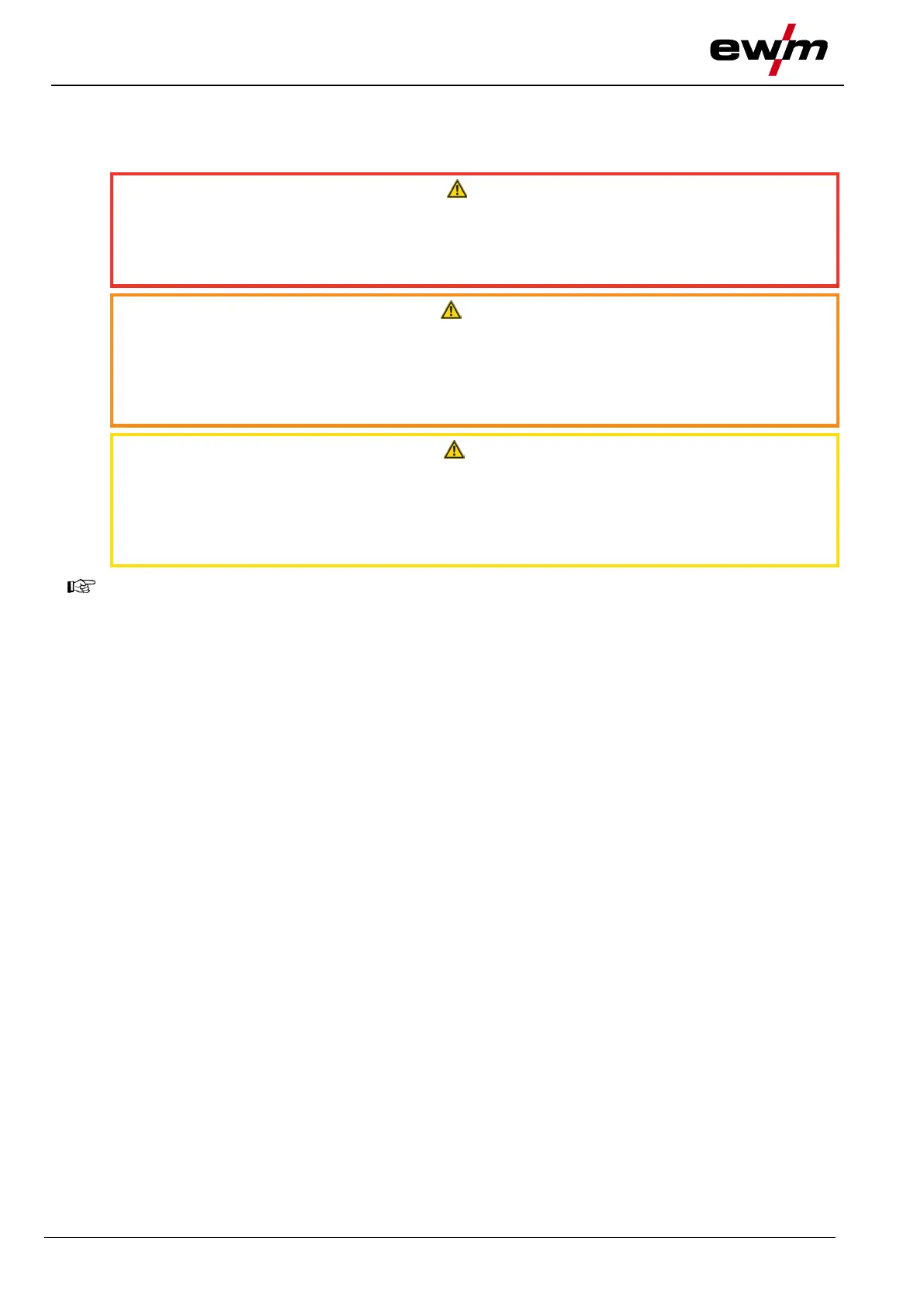 • Safety notes include the "WARNING" keyword in the heading with a general warning sym-