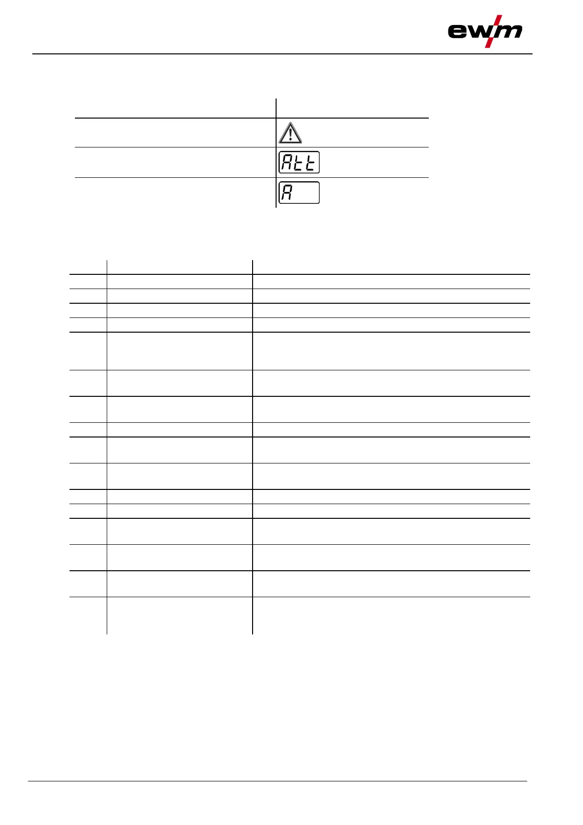 The cause of the warning is indicated by a corresponding warning number (see table).