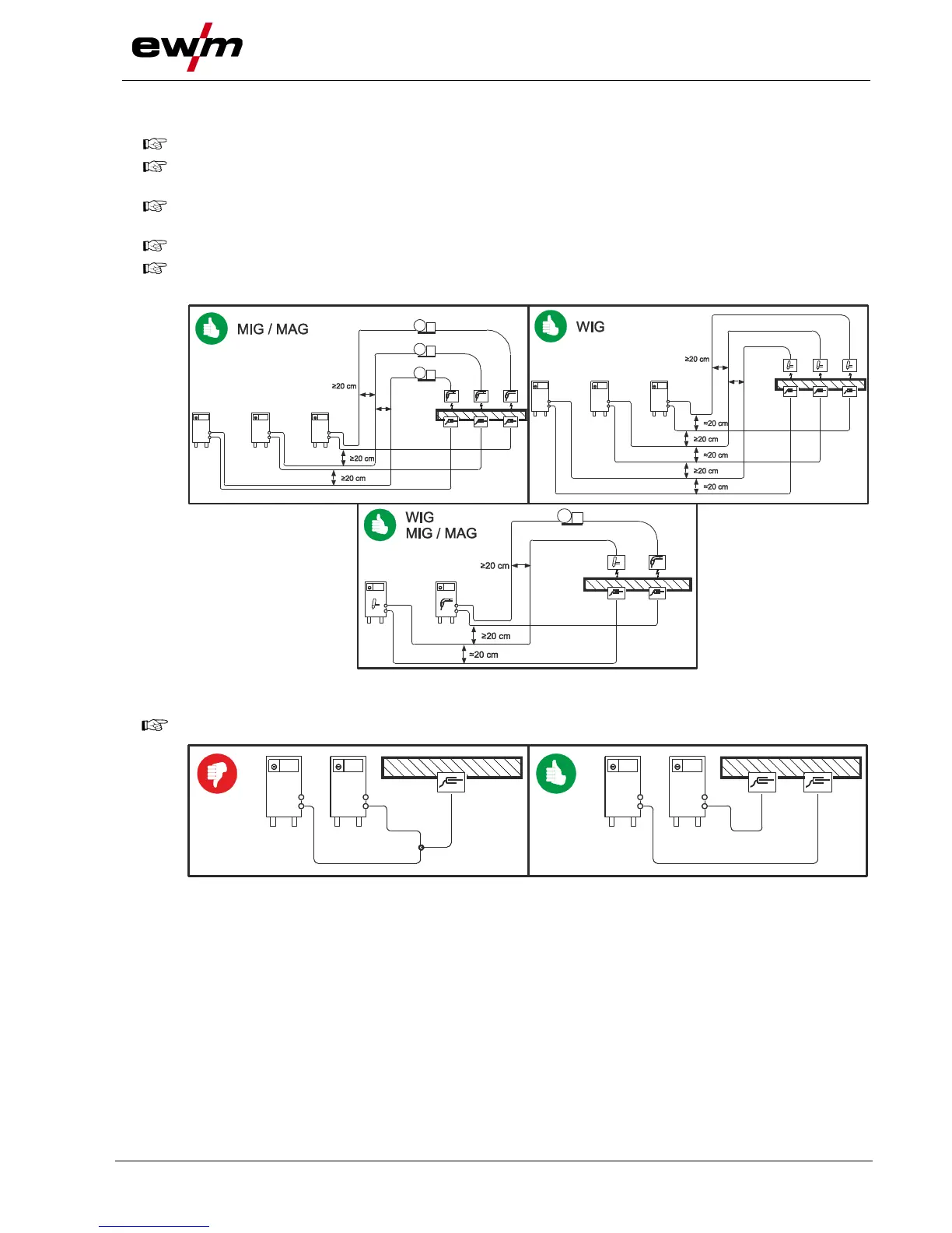 Lay the workpiece lead and hose package of power sources without HF igniter (MIG/MAG) for as