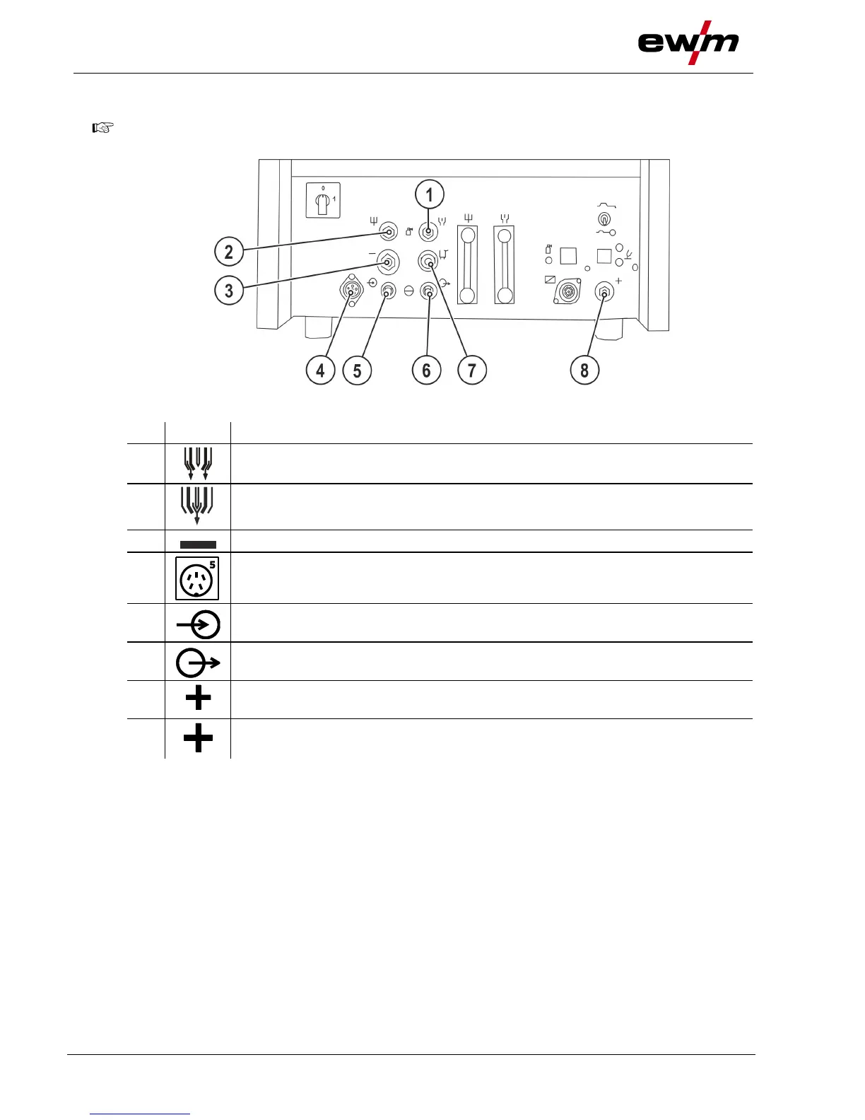 • Insert the torch control lead plug into the “5-pole connection socket, welding torch control lead” and