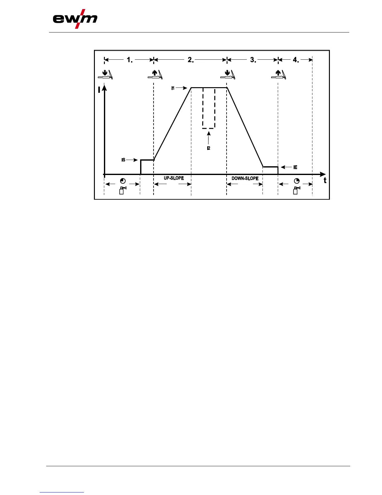 • The welding current increases over the set Up-slope time to the main current I1.