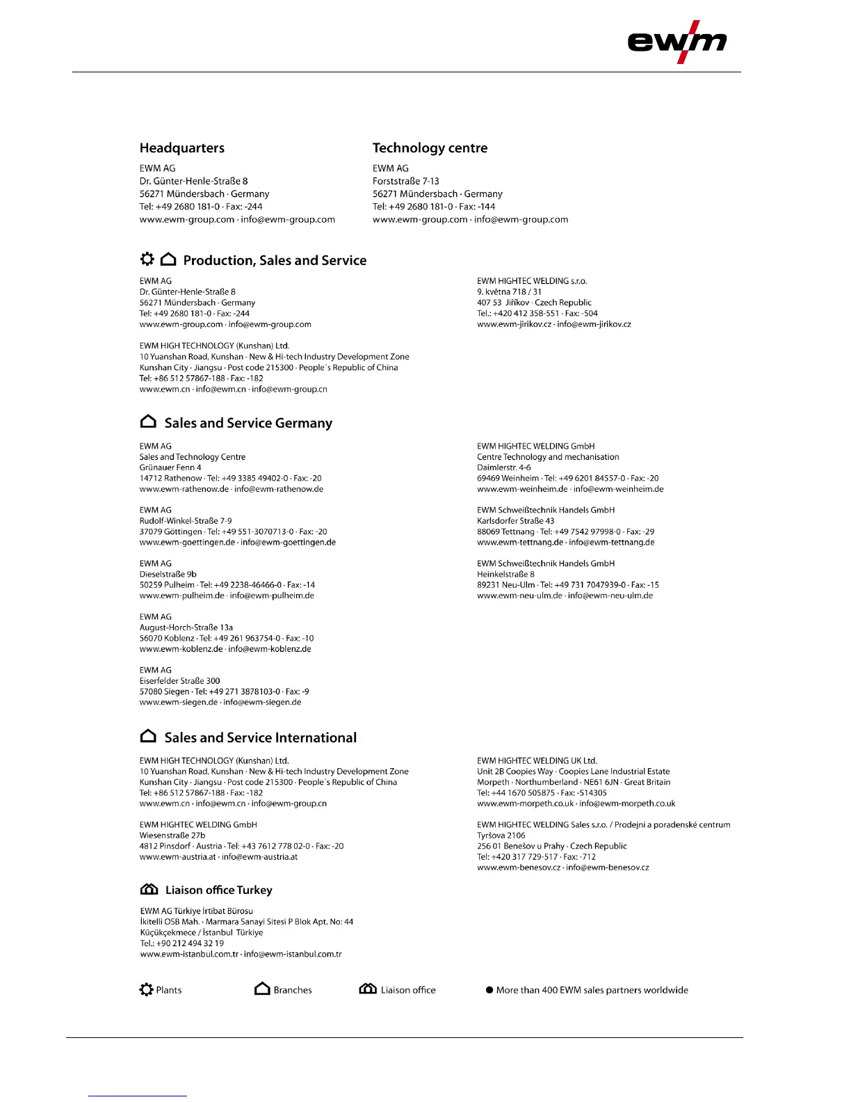 EWM microplasma 20 - Overview of EWM Branches; 9 Appendix A
