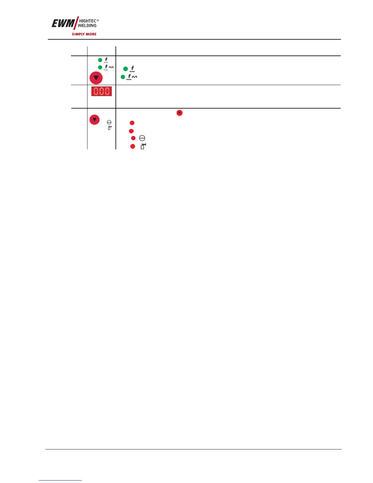 Display of the parameters and values: Welding voltage, program number, coolant