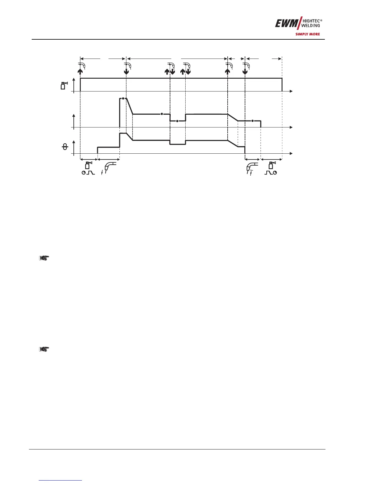 • Arc ignites after the wire electrode makes contact with the workpiece, welding current is flowing (start