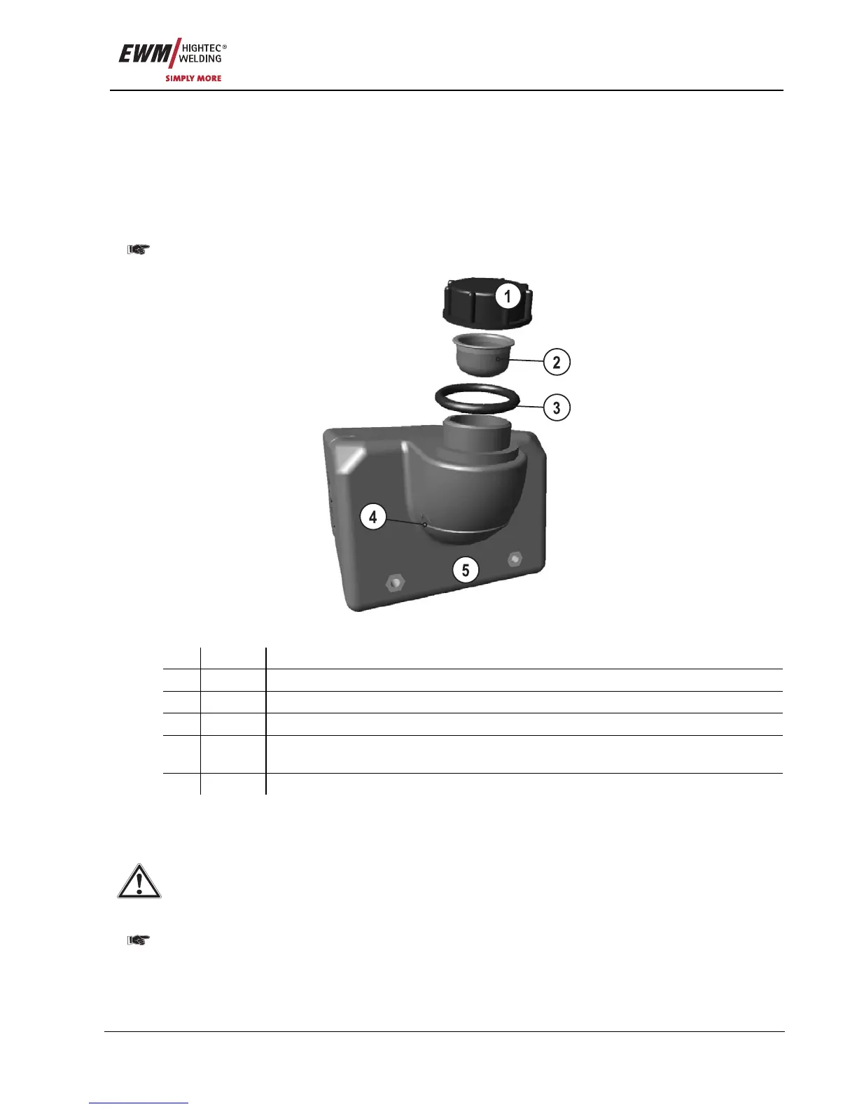 • Top up coolant to the filter sieve insert, close sealing cover again.