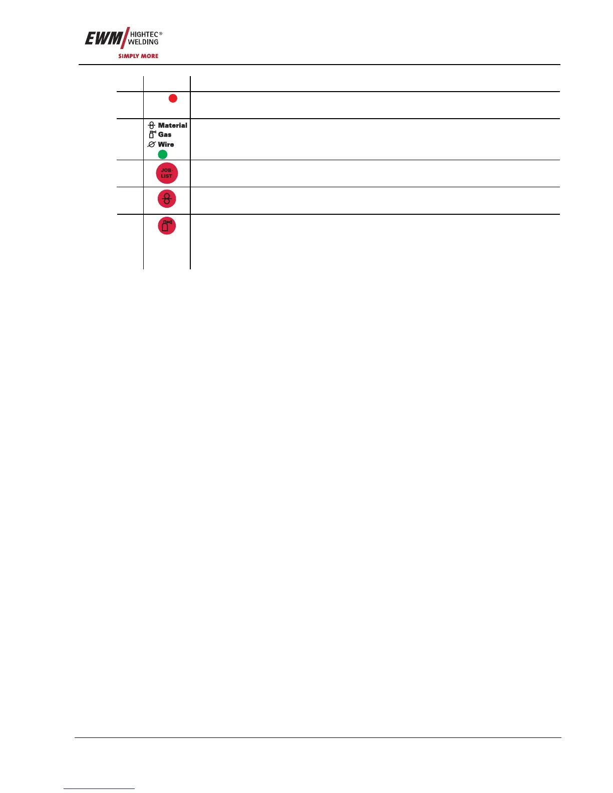 • Gas test: For setting the shielding gas quantity